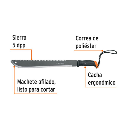 Machete de Doble Filo 18" con Correa