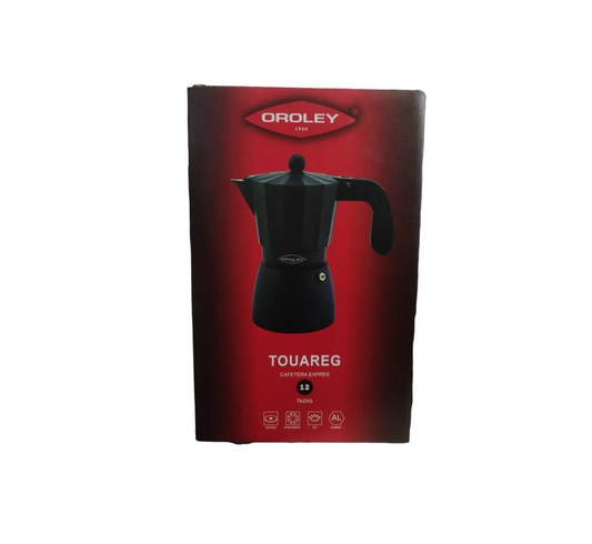 Cafetera Italiana de Aluminio Negra Premium Touareg 12 Tazas
