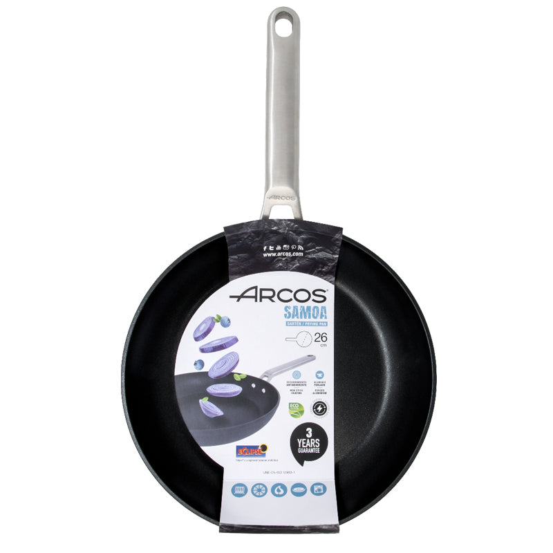 Sartén antiadherente serie Samoa es un complemento ideal para todo tipo de cocina, elaborada con un mango de acero inoxidable y con base de acero forjado.