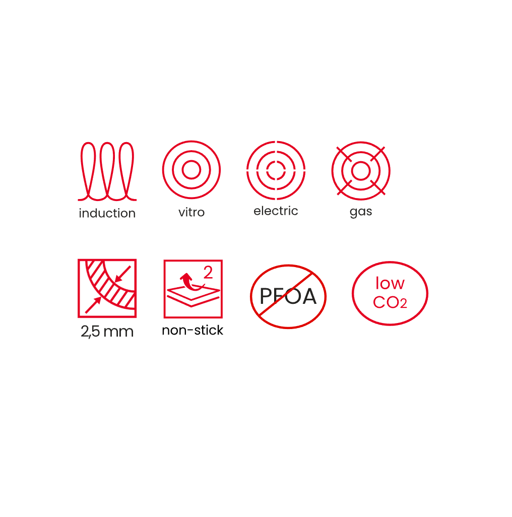 Esta recubierta con 2 capas de antiadherente de alta calidad, libre de PFOAS y baja en emisiones de Co2.
