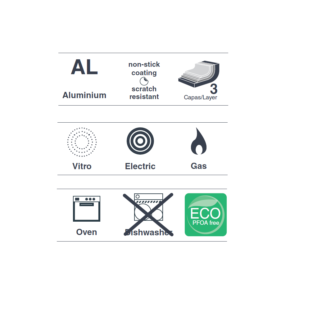 Sartén fabricada con 3 capas diferentes para una mayor resistencia y calidad.